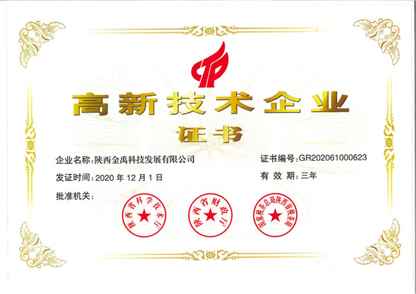 2020年12月1日,我公司順利通過由陜西省科學技術廳、財政部和稅務總局組織的高新技術企業認定評審,是自 2017 年公司獲得國家級高新技術企業資格以來,被復審認定為國家級高新技術企業。[查看詳情]